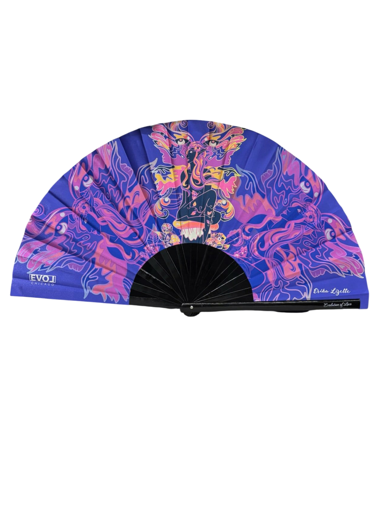 “The Bass Fairy is about movement and transformation—light, yet powerful. I wanted this fan to feel like wings in motion, carrying the energy of the music into the crowd.” – Erika Lizette