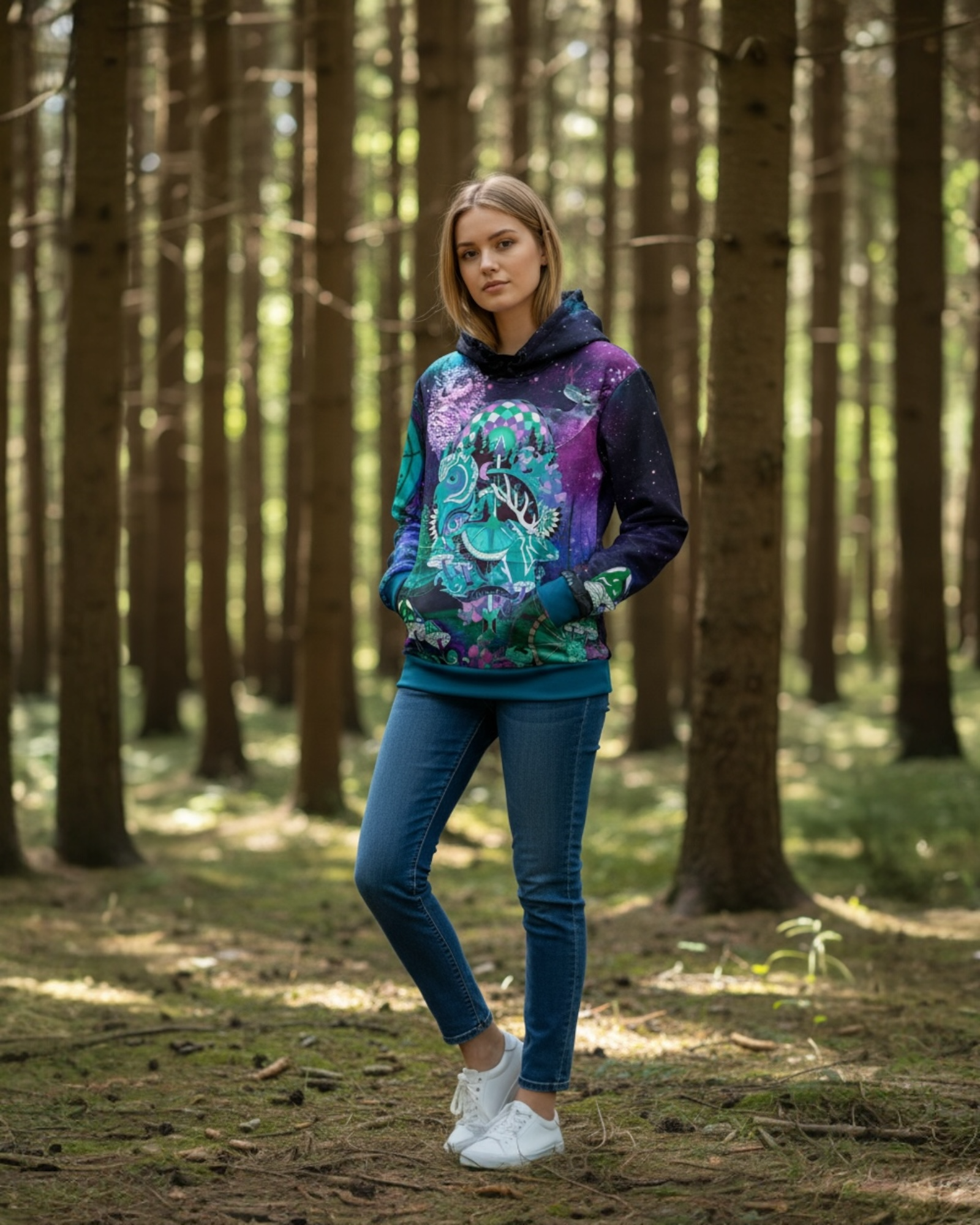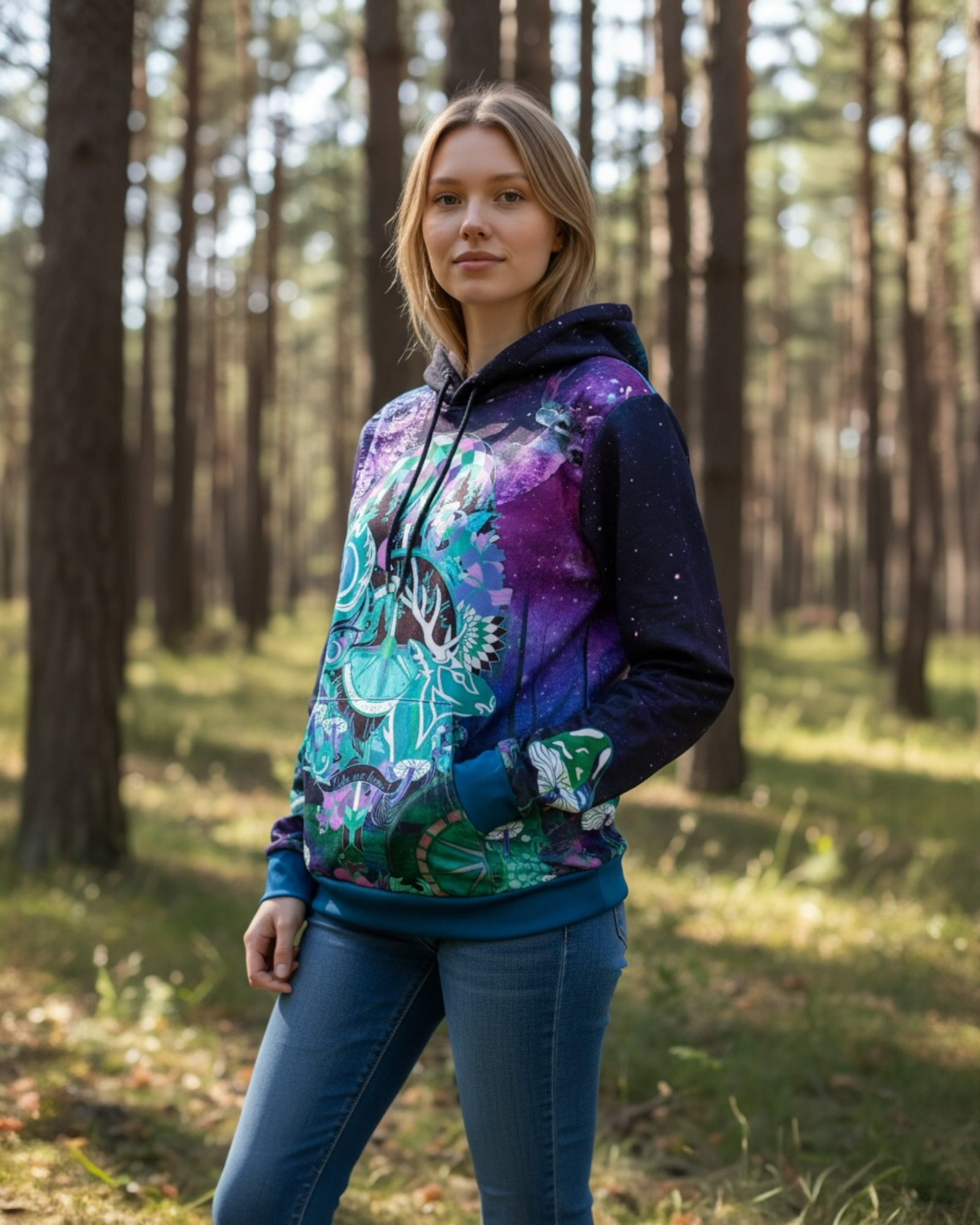 The Enchanted Compass Sublimated Hoodie by Erika Lizette fuses warmth and wonder in a garment that glows with purpose. Sublimated with her signature cosmic compass design and built from ultra-soft fleece-lined polyester, this hoodie is a wearable portal—crafted for festivals, chill sessions, and nights under the stars.