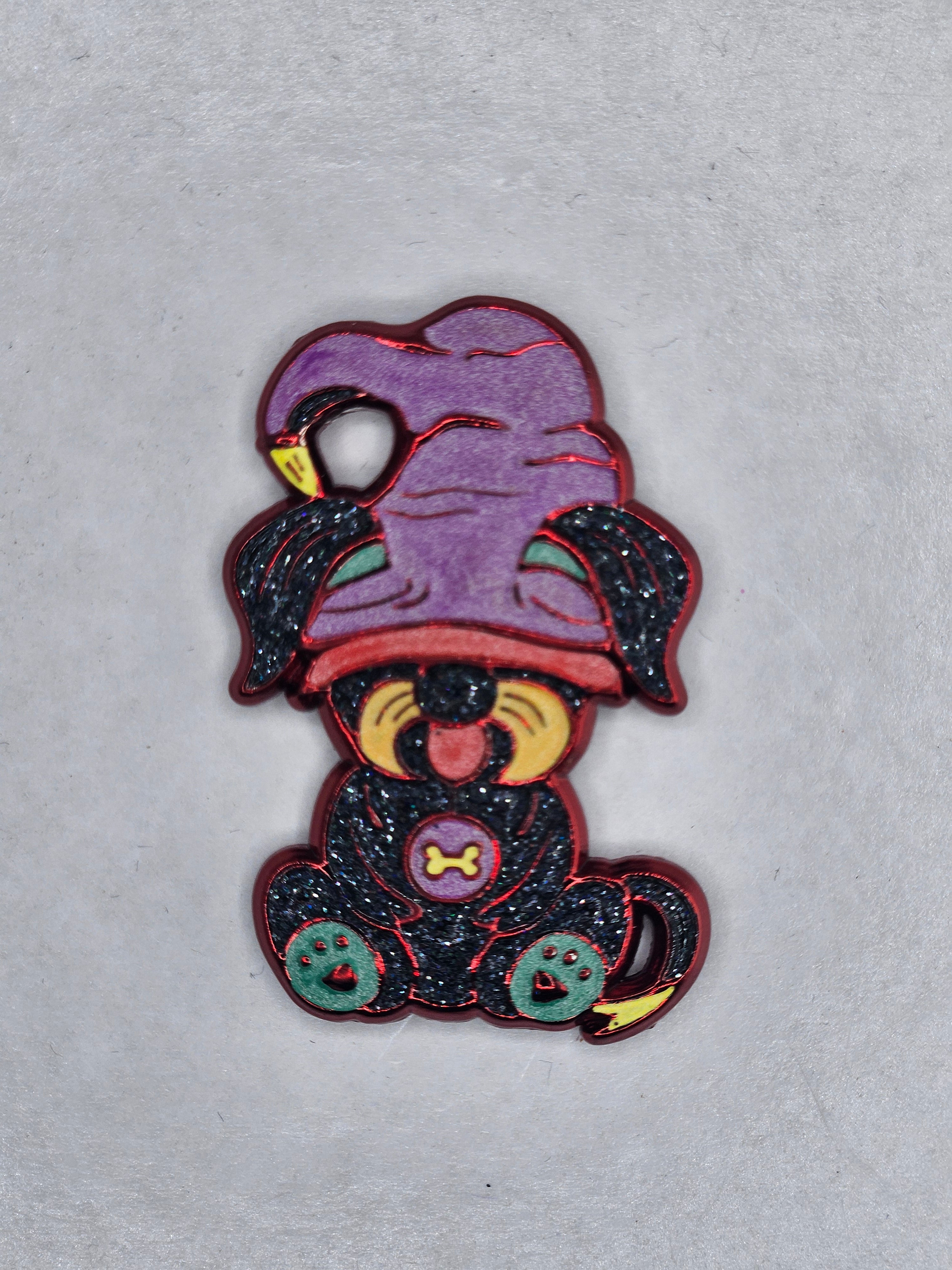 The Mushroom Gnome Puppy Pin – Red Anodized by Erika Lizette brings enchanted loyalty to your lapel. With glowing UV-reactive accents and soft enamel details, this grinning gnome pup sits proud atop a radiant mushroom—watchful, whimsical, and always up for an adventure.