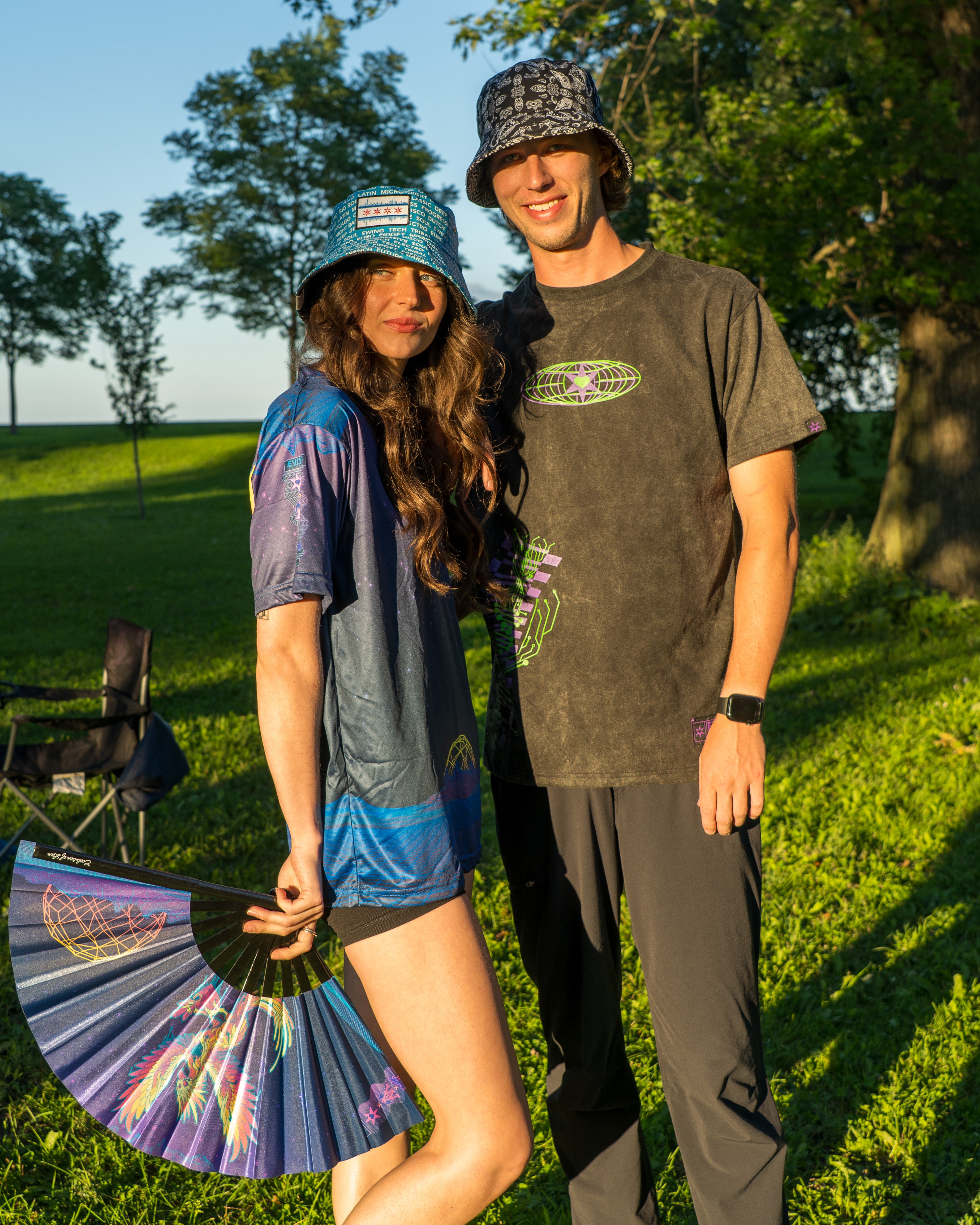 🔥 Born from fire, made to rise. The Phoenix Heart Sublimated T-Shirt carries Mike Swanson’s radiant design across a UV-reactive all-over print that glows under the lights. Lightweight, bold, and built for long nights, this tee is a wearable flame for the festival and the streets.