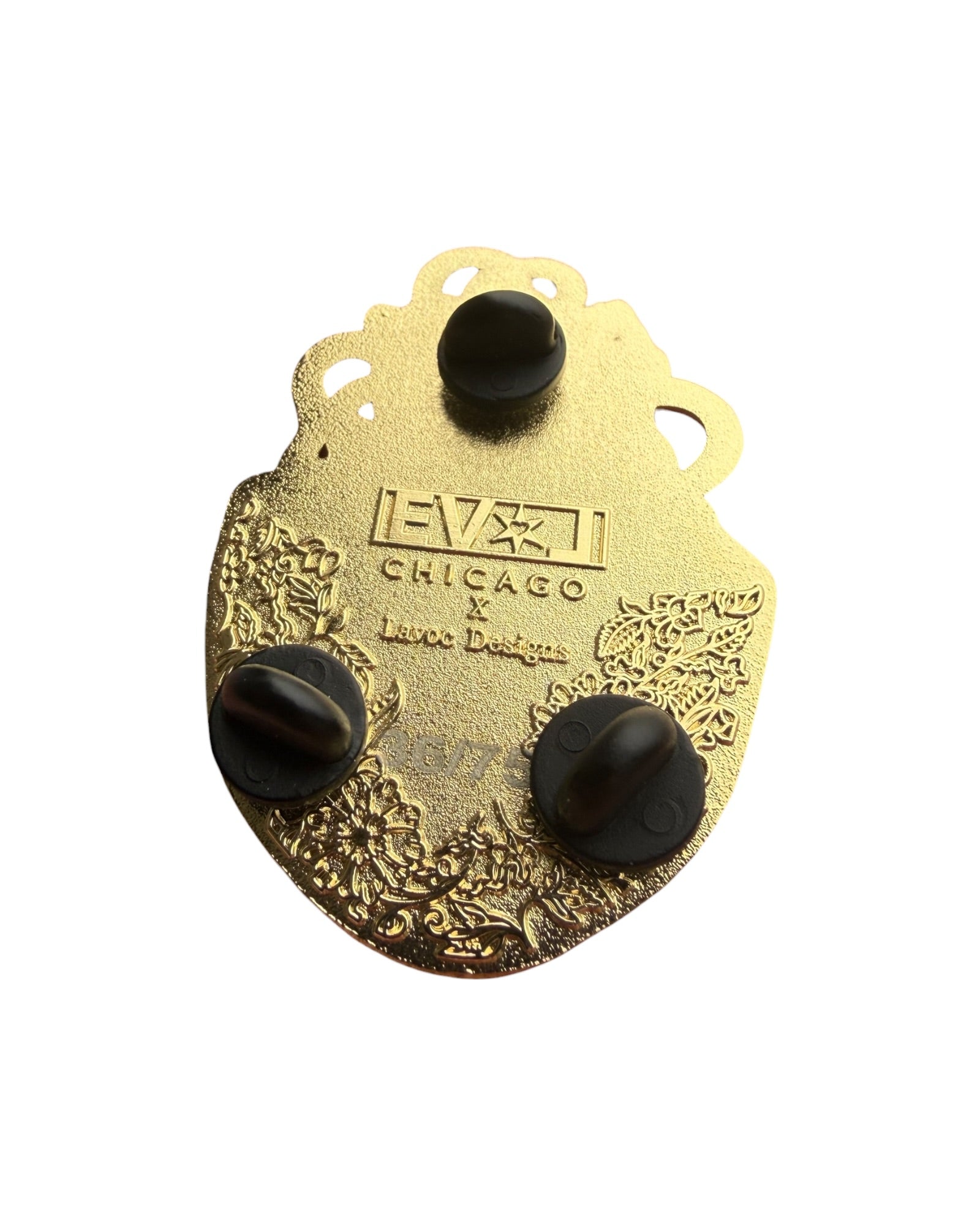 The Cyborg Overload Pin – Gold by Livoc Designs channels the raw energy of a futuristic machine pushed past its limits. Cast in brilliant gold metal with intricate cybernetic detailing, this design captures the intensity of digital power meeting artistic imagination. Bold metallic lines and sharp mechanical forms give the piece a striking presence, making it a standout accessory whether pinned to a jacket, festival bag, or collector display.