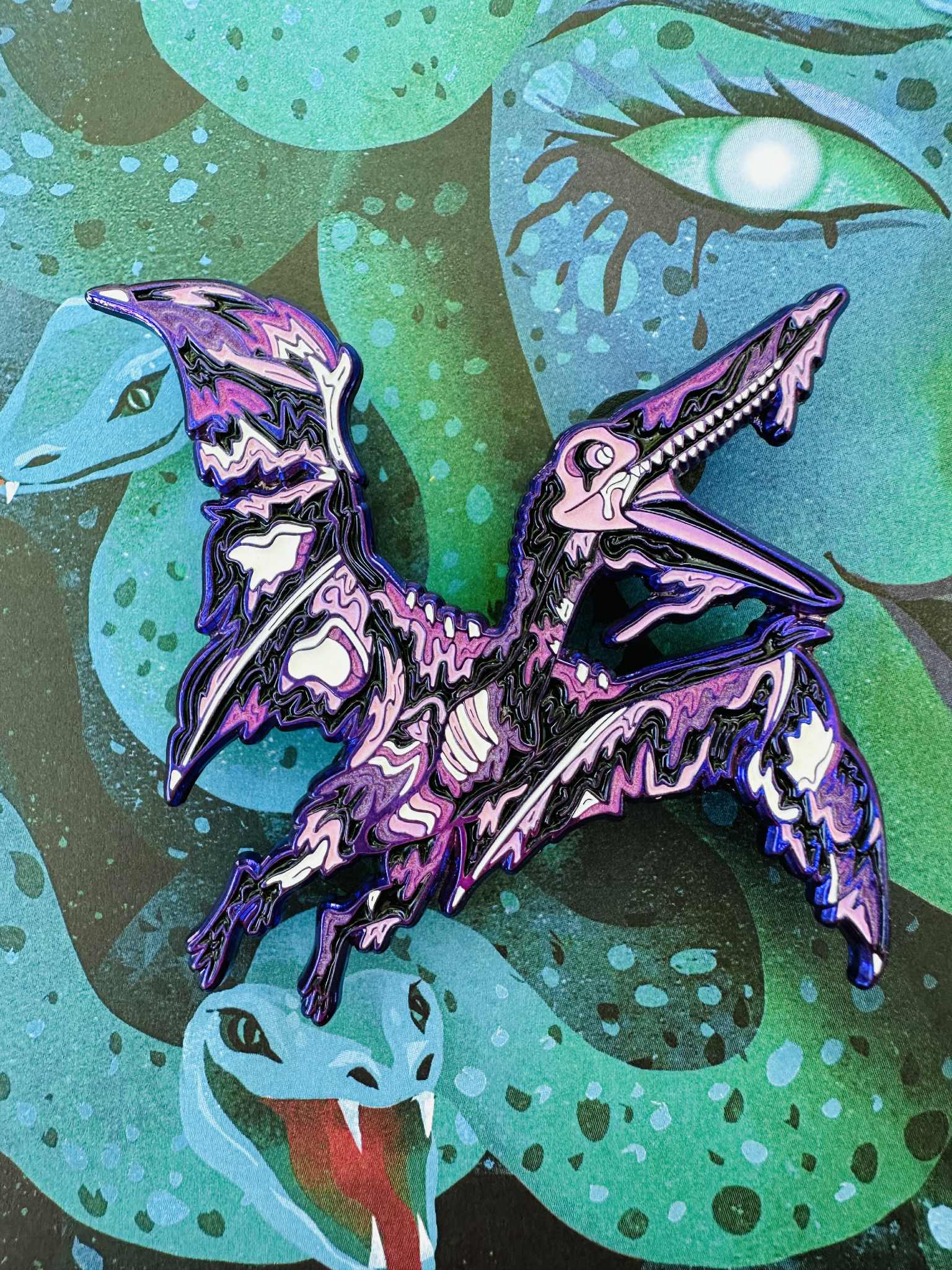 The Lost Lands: The Lost Undead Pterodactyl Pin Set brings prehistoric flight and festival energy together with Erika Lizette’s signature bold design style. Each limited-edition variant features UV-reactive accents and high-contrast finishes, perfect for collectors chasing rare drops and festival legends.